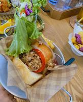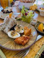 朋友想吃咸食点了这个,我随意用手机拍了一下照纪录?有沙拉、水果、唐扬鸡、还有人气炸虾饭团?每个都来一点的概念??价格我觉得有点小贵因为份量不算多~