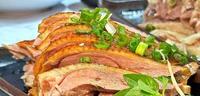 依照惯例~第1名.鹅切盘(招牌咸水鹅/ 招牌蔗香燻鹅)2-3人份虽然说是2-3人份,但这份量真的多,不挑部位一份200元!我去延三夜市吃1/4的鹅肉就要花掉我400-500元去了,偶鹅嚐嚐这价位根本佛心来着,看我还不吃爆它!调味部分属於较清淡的口味,可以吃出鹅肉肉质跟本身的鲜甜。我觉得这点很棒,有些鹅肉调味过重或淋很多鹅油,我都不喜翻!偶鹅嚐嚐的调味很对我的胃口,咸淡适中。就连外带回去给我们家小朋友们吃,大家都是爱不释手!