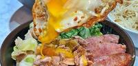 第2名.招牌鹅肉饭加蛋半熟蛋拌饭本来就是我的最爱,蛋本身还是用鹅油去煎的,满满的鹅肉香气啊!将半熟蛋的蛋黄液和米饭混和,入口只能一个字形容,吃起来就是爽(说好的一个字呢)!搅拌过后的米饭中有鹅油香气和滑顺的蛋液,搭配丰富的配菜,高丽菜、香肠、大陆妹,还有切成丁状的蔗香燻鹅肉,那个皮搭上瘦肉,带有烟燻味,真的一口一口不停地送入口中,超棒的(现在我在流口水)!呼呼,招牌鹅肉饭加蛋我可以吃下好几碗(虽然我一碗就饱了,哈)!