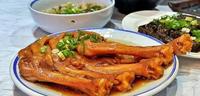 第3名.招牌化骨鹅掌1份5支招牌化骨鹅掌一上桌热气腾腾的冒烟,不怕烫只想吃的我抓一支赶紧送入口,嗯~立马感受到满满的胶质,轻轻地吸一下,骨头就跟那层胶质分离,一整个超轻松,连蹭骨头都省了!满满的胶质补充胶原蛋白,老婆说女生就是要点这个吃,骨肉能够轻易分离代表卤的非常透啊!调味一样不会让人感到有负担,却又能够嚐出咸香感,看来以后老婆会常常指名要来偶鹅嚐嚐了!