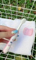 而Chicco 的儿童牙刷采用圆滑刷头设计,刷毛不会对孩子们的口腔造成伤害,握柄也有防滑设计这个细节,并且有牙刷盖,出去玩的时候可以保护牙刷方便携带!