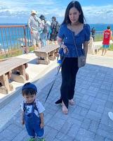 亮丽抢眼的颜色跟出游有搭到,让整体搭配更时尚可爱了~(妈妈很重视)