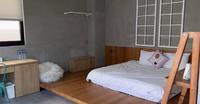 进到房间后,房间内的风格整体走一个简约的工业风且采光明亮✨而且双人房间的空间非常宽敞,整体给人一个相当舒适的感觉哈迪可以尽情在房间内奔跑玩耍也没有问题呢!唯一小可惜的是民宿没有电梯,扛行李加哈迪的推车走到三楼实在有点累人(拭汗