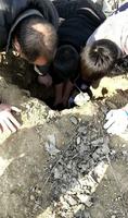 影片里有一个深邃的坑洞,里面受困着一只全身裹满泥巴的黑狗,众人发现后合力抬起牠,救到受困的狗儿让大家松口气,但可能是在洞中困太久,狗儿还不能接受刺眼的阳光,结果前脚没站稳又差点栽进洞中,大家慌忙地再抱着牠出来。