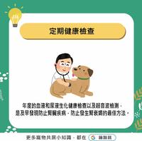 老龄犬应每年检查一次血液、尿液以及超音波检查。监测宠物的食慾,饮水量和精神水平等事情。