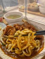 ?咖哩鸡肉乌龙面$220?唐扬鸡咖哩乌龙面$250「私嚐の吃饭」主打咖喱丼饭和乌龙面这款唐扬鸡咖哩乌龙面是店家近期新品 乌龙面是我喜欢的那种Q弹面条 咖喱浓度刚好不会太淡或太重