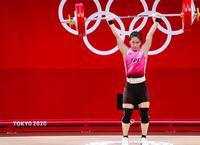 紧接着挺举项目,郭婞淳第一次试举125公斤轻松举起确保金牌入袋,第二举133公斤再次顺利举起,打破奥运纪录,第三举141公斤挑战世界纪录可惜未能成功。郭婞淳以抓举103公斤、挺举133公斤,总和236公斤夺下东奥举重女子59公斤量级金牌,也是中华代表团本届奥运首面金牌。