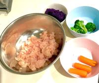 3.将鸡绞肉和各位蔬菜揉合成一个个丸子?看到彩色的食物心情会变好呢!