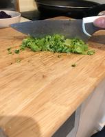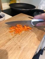2.花椰菜和小红萝卜切成碎粒(越碎就越容易和肉揉合在一起)
