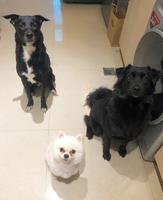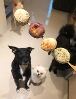 为了吃这小丸子,我家三只怪兽居然同时坐下装乖欸!真是奇景!