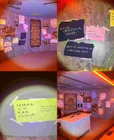 最后的展区我觉得很漂亮,另外旁边还有一个区域有桌椅可以在那边写下对於死亡的感想,写完之后可以请工作人员扫描到萤幕上?