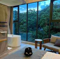 除了民宿本身的猫猫们,你也可以带你的猫猫狗狗一起来度假,而如果有带宠物的话会住在二楼的房间,没带宠物的话会住在三楼的房间,当初完全是被浴缸和浴缸外的山景吸引,而房间的设计也非常特别,整理的也很乾净,可以亲自去住一晚体验看看!