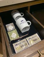 房间内有提供两瓶瓶装水、热水壶、马克杯、茶包及冲泡式咖啡