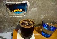 一整片水泥工作台,工作人员正聚精会神准备客人的咖啡、餐点,简单蓝色磁砖拼贴,简约又不显凌乱