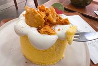 如果说咖啡是设计人的谬思,那木更咖啡就是咖啡空间之於设计人的谬思!隐身住宅巷弄里的木更咖啡,采用泥作灰白色调的空间装潢,看似低调简约,却又在用餐区搭配复古桌椅、童趣摆饰品和展示超现实画作,如星际特攻队或进击巨人等,令人莞尔。除此之外,我是冲着他们家的蜂巢鲜奶油戚风来的,使用台产蜂蜜脆饼(又黏腻又香醇,太爱了)、冲绳黑糖、法国香草籽和鲜奶油,一汤匙舀下送入口中,只能说幸福了!