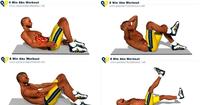 动作一,交换碰跟卷腹,左右移动腰身,用双手碰脚踝。