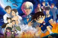 ▲上排左至右:柯南、新一、小兰、基德、灰原、服部、赤井秀一、安室透。下排左至右:高木警官、佐藤警官、松田阵平、萩原研二、诸伏景光、伊达航、犯泽先生。