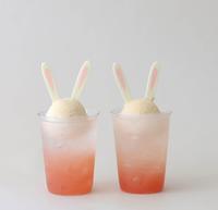 以代表春天的粉色结合代表复活节的兔子制作出期间限定漂浮饮品。清爽的白桃柠檬风味气泡水上方放上一球招牌的皇家波本香草冰淇淋,再放上用白巧克力制作的可爱兔子耳朵。