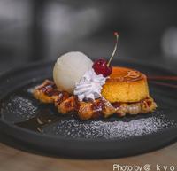 上方挤了霜淇淋的浓郁布丁。