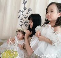 上衣是白色蓬蓬上衣,跟妹妹塔莉搭配,