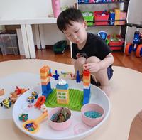 今天我们坐在上面玩感官盆