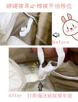 被套内侧,有固定棉被的被耳,绑两个活节就可以固定好棉被,不用怕棉被位移,如果夏天怕太热,也可以不装被套,直接当作一般的凉被喔~
