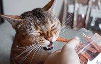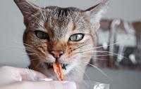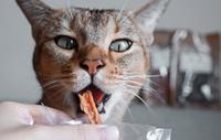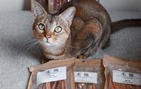 目前试吃下来 查理还是最喜欢鸡肉条接着是肉乾 看来是更喜欢单纯鸡肉呢!!! (猫咪的鼻子果然可以分辨好肉肉)