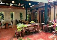 中庭座位区,用的也是厚实的原木桌子,抹上水泥的红砖墙上开了三个窗户,可以看到外头庭园里的花花草草和水池选一个自己喜欢的座位,先把身上的行囊放下