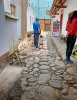 地上也是用大小石头铺成的路,推车没办法进来