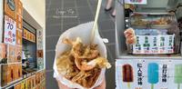 在七美双心石沪旁有着一排的小吃休息站,虽然每个店家贩卖的都大同小异,不管是咸食甜食这里都有,价位也差不多,都是两颗花枝丸25元的价格。不过还是请大家多多支持70岁的老船长阿伯喔!他还特别注明没有辣妹,因为其他店家都是约莫四五十岁的女店员。