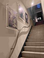 海报群展示在楼梯间,观赏之余要小心台阶。