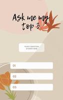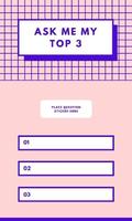 首先先选定一张喜欢的「AskMeMyTop3」的游戏图片作为背景,上传到**Story、让朋友或是网友问你3个问题,最后根据朋友的问题填写答案上传Story!编辑觉得这个小游戏有一种像TruthorDare的感觉,好刺激啊!