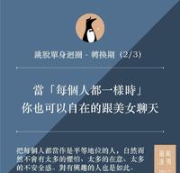 「首要的首要,记得不要再做一个『疯子』」 之前编有提到爱因斯坦名言:「什么叫疯子,就是重复做同样的事情还期待会出现不同的结果。」 因此转换的第一步,就是先从改变心态开始。这个心态是什么? 就是把「单纯想要交女友」这念头,转换成「我想拓展我自己」。 这样的心态差距会很大,因为在回圈的你,就是处於单一、固定的生活圈,经由别人介绍、刚好有聚会上的新朋友、刚好在交友软体上遇到回覆你的人等,导致瞬间带来给你的冲击也好,新奇也罢,让你瞬间投入「自我幻想的爱情泡泡里」。 那种「非这个女孩不可」的冲动,就在初见女孩的那一刹那产生。 所以所谓的「拓展自己」,除了加大生活圈与你的知识圈外,重要的就是降低「你初见陌生女孩就心动」的状态。 而拓展自己的这件事情,编编建议拓展的是「实际」的生活圈或交友圈。 这个「实际」很重要,并非是一群又一群的线上聊天室,而是真实的与人们相处、接触、交流,进入一个不一样的圈子,融汇着不一样的观念与思维模式。 (编编谜之音:至於要不要接受新环境的观念与思维,这个留待后面再说) 你可以从不太熟的朋友聚会开始、一个陌生的酒吧开始、一个线上宣传到线下参与的活动开始、一个组织办的活动开始,甚至从加入某一个你有兴趣的社团开始。 总之,就是从拓展自己的生活圈开始。 有不成数据的报导显示,会参加陌生聚会、线下活动,甚至联谊,大部分女生的积极度与参与度都来得比男孩高。 所以男孩们看到这边,就可以提起你的一些些行动力,去认识一下愿意参加活动的「大部分女孩」。 拓展生活圈,除了有很多的新事物可以学习之外,回归到我们的回圈,就是要训练男孩们,必须学会怎么跟不同的女孩们相处! 像是长得美丽又是你的菜的女孩,你会不会害羞?模特儿等级的女孩,你该如何应对?高学历高薪水高职位的女孩,你是否有办法深聊?你不喜欢的女孩,你是否有耐心可以相处?像男孩个性般的女孩,你是否可以当成哥们?你敢不敢跟坐在你身边的陌生女孩开启话题? 再来多一点的,就是你在场合上的表现,适时适地的话语,恰如其分的玩笑等等。 这些并不是在家自己看书籍就可以学会,需要更多的接触、练习、交流、氛围等,经历了上述过程,男孩你才可以有加大你的「舒适性」与「自在性」,在於各种女孩的面前。 也就是编编会在下一个阶段说明的事项。 男孩你也许会有疑问,那这样的转换,会不会过於世俗化、过於社会化、过於不太像自己了? 不能遑论的,有人确实在这样的过程中变得飘了、变得攀权附贵了、变得阿谀谄媚了。 但编编能说的就是,环境确实会带给你很多的影响,如果你的本心为善,只是去训练自己的外在应对与特质,辅以认识更多不一样的人群,从中撷取一些你认为是好的观念,其实并不会偏差太多。 像编编认识的很多男孩们,在经历过和不同群体或女孩相处后,依旧维持他很可爱的本性,多了更多因时制地的应对,给出更有趣与幽默的玩笑话,直爽却又不伤人,并不断展现他们很魅力的一面。 同时,跟不同类型的女孩相处后,男孩才会知道更多女孩的「小心思」,毕竟有些女孩对於「择友」是有条件式的,像是你必须要有钱、你必须要有某个好公司、你必须有认识谁谁谁、你必须是有什么等等。 我们没有批评这样的思想是不好的,因为连男生你自己也是,例如你只跟漂亮女孩相处、你只跟辣妹攀谈等,其实是一样的道理。 只是我们会在这些相处过程中,汰选你要的朋友与圈子,你也可能会看到你想敬而远之的女孩。 接下来,准备谈谈转换的第二阶段,避免穷追猛舍的心态。