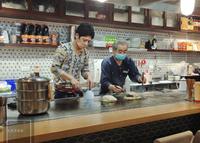 煎台有两位师傅掌厨,动作十分俐落,而且一看就是日本人。