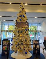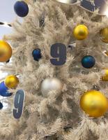 白色圣诞树上装饰着深蓝、金色以及银色的圆球,此外还有许多「9」字样的吊牌,实在是相当具有《99.9》的风格。