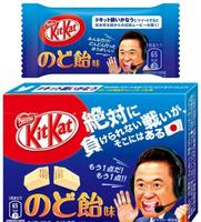 KitKat与日本知名足球巨星「中田英寿」合作,推出了三种「酒味」系列的巧克力,有日本酒(红色包装)、柚子酒(黄色包装)、优格酒(蓝色包装)三种。