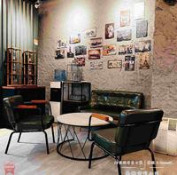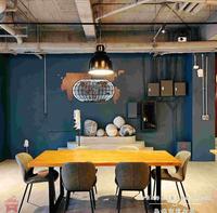 茶旅装潢设计同样走的是深邃蓝搭配摩登工业风格,管线裸露设计的天花板、摩登灯具装饰及大量使用木质家俱打造工业设计。