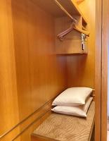 衣柜里面除了有几支衣架之外,还多放了两颗枕头