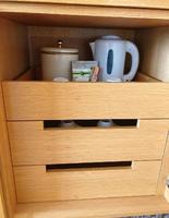 往里面走会看到一个小茶几,原本应该只有最左边的四罐矿泉水