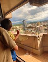 兜兜对於这个景观满是好奇,搭乘电梯对他来说也变成一件好玩的事情