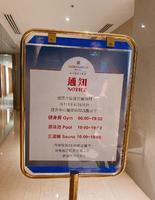 进去里面之后电灯也没有全开,走廊中央放了一张营业时间