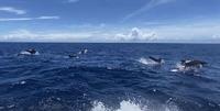约绕一半的龟山岛后会再往外航行找鲸豚去,运气好的话能看到一大群的海豚,当然也会有差的时候只有几十只,最惨的是一只都没有看到;会看到多少数量真说不准,所以抱持着一颗快乐开怀的心很重要;宜兰线赏鲸除了赏鲸外还可加码登龟山岛,走宜兰赏鲸行程多样又丰富