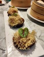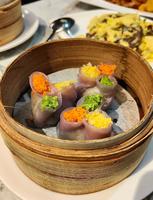 精致小巧的鱼子烧卖,外观讨喜可爱,烧卖是港式点心的人气品项之一,在薄薄的外衣底下隐藏着丰盈饱满的内馅,细细品嚐,Q软弹嫩的口感伴随着内馅的鲜甜,带出了犹如海洋般珍贵的神仙级美味,於舌尖之上演绎着精采绝妙的味觉飨宴,值得您悉心珍藏、无限回味。