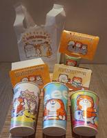 就算有合作的店家但弘爷汉堡每家进货的一些图案以及纸盒都会有些许不同像我一开始买都没看到白烂猫的袋子前几天去买就有白烂猫的袋子(港动)然后已经有3个一样的中杯饮料图案之后为了要收集不同的白烂猫就直接升级大杯饮料了???