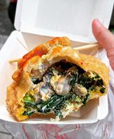 放入油锅煎炸至金黄酥脆后,起锅那诱人又胖嘟嘟的蚵仔包,真是让人唾液疯狂分泌了⋯?