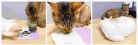 (??葎葎吃完很淡定,奶茶则是蹭到身上都是猫薄荷)