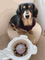 这是一只黑四目长毛腊肠,是个女孩目前10岁了,身体开始有一些毛病?