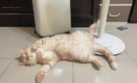 奶茶最喜欢躺在地板上翻肚,圆润的小肚子不藏私直接露给大家看,而且脚脚还要翘起来才舒爽,看着牠舒服到不行的睡姿,实在是让人心中隐隐升起一股羡慕的情绪⋯⋯