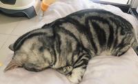 相较於奶茶的奔放露肚肚睡姿,馒头就比较内敛一点,埋头苦睡的牠采用的是窒息式睡眠,整个人蜷成一颗有斑纹的馒头,特别可爱!