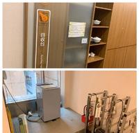 在门外有专属的鞋柜,换上室内拖鞋和酒精消毒之外,进门就是柜台和两张访客座椅。